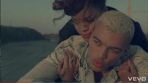 Although I have to say that the video certainly looks nice. It matches some darker imagery to a fairly poppy song sort of like a “Try, Try, Try” with fewer clothes and more writhing. It’s put together almost like a small film. A small film in which Rihanna does drugs, plays around, and ultimately leaves her douchey boyfriend. Her douchey boyfriend who seems aggressive…and violent…with lots of muscles…and black…with blonde hair…
