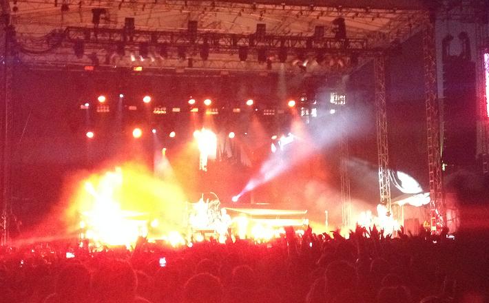 I don’t like Fall Out Boy. I like Fall Out Boy songs, but it took seeing them live to make me finally realize that I kind of can’t stand them as an entity. To be fair, I entered their set cranky begin with: I was burnt out and vaguely hungover, and the stocky person in front of me was drunkenly staggering into everyone two songs in. But even without that, it would have been a bum set that didn’t have much going for it. “Save rock and roll” applied more to their all black, leather, and fire geyser stage than it did to, well, Save Rock and Roll, which made up a painfully high percentage of their setlist. “The Phoenix” actually benefited from turning into a near-metal number, but the rest of the material felt flat, especially next to punchier numbers like “Dance, Dance”, and “I Don’t Care”.