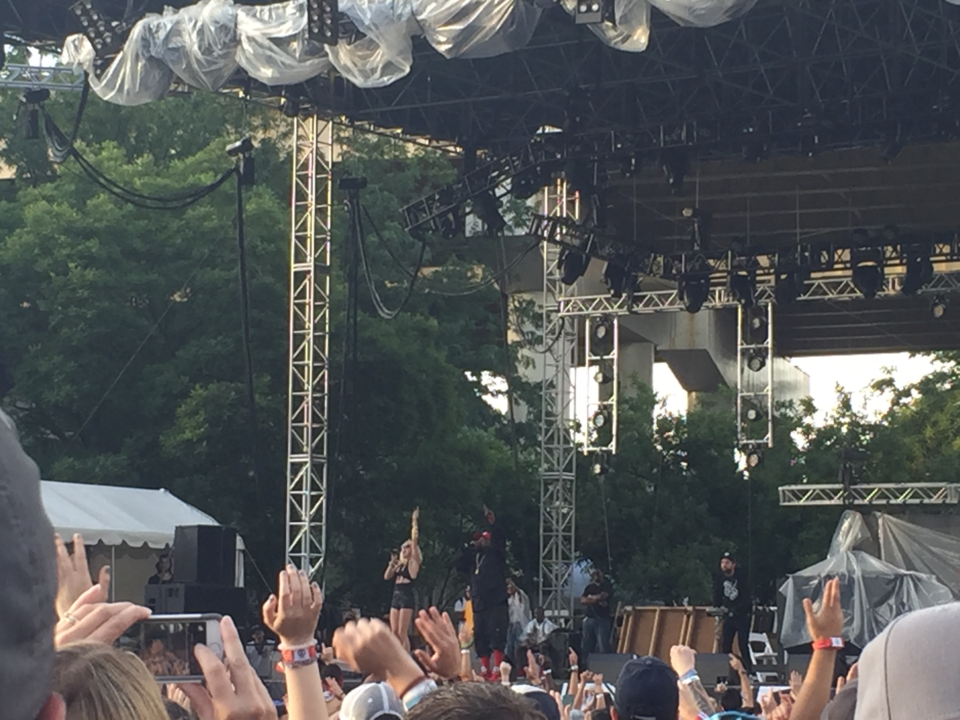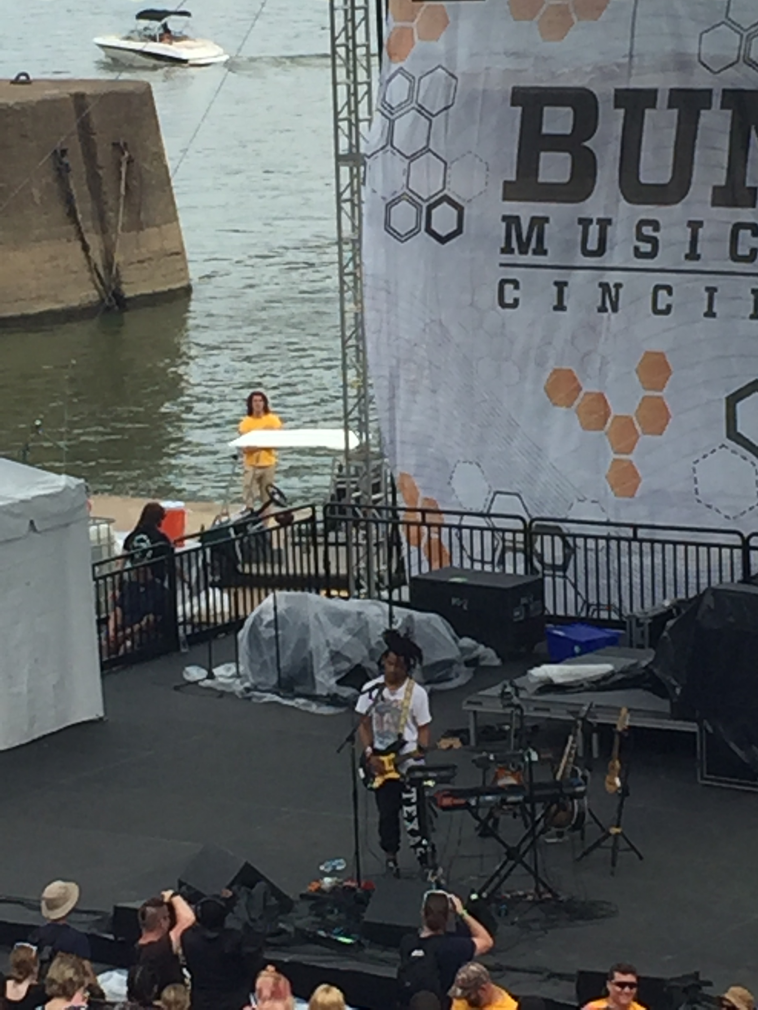 After The Neighbourhood officially won the Tame Impala Memorial Rainbury Award around 5:45, the next two hours was like the camping part of the last Harry Potter book: a buncha slow shit while everyone waited on the plot (or in this case, the festival) to kick back in. We waited out the storm in the tunnel under the Purple People Bridge, ate, and then we parked it in front of the Sawyer Point stage for Big Grams to start at 7:00. People behind us were swatting around a beach ball (I guess they were Death Eaters, if we’re taking this Potter comparison further), and just as BG was about to start, it starts storming again, but with the fun, fun addition of lightning. At that point, the Bunbury staff started telling people head for cover again. I don’t remember how long the delay was, but it was long enough that we went back to the tunnel, and I remembered that everyone, and I mean everyone hates that fucking camping part of Harry Potter.