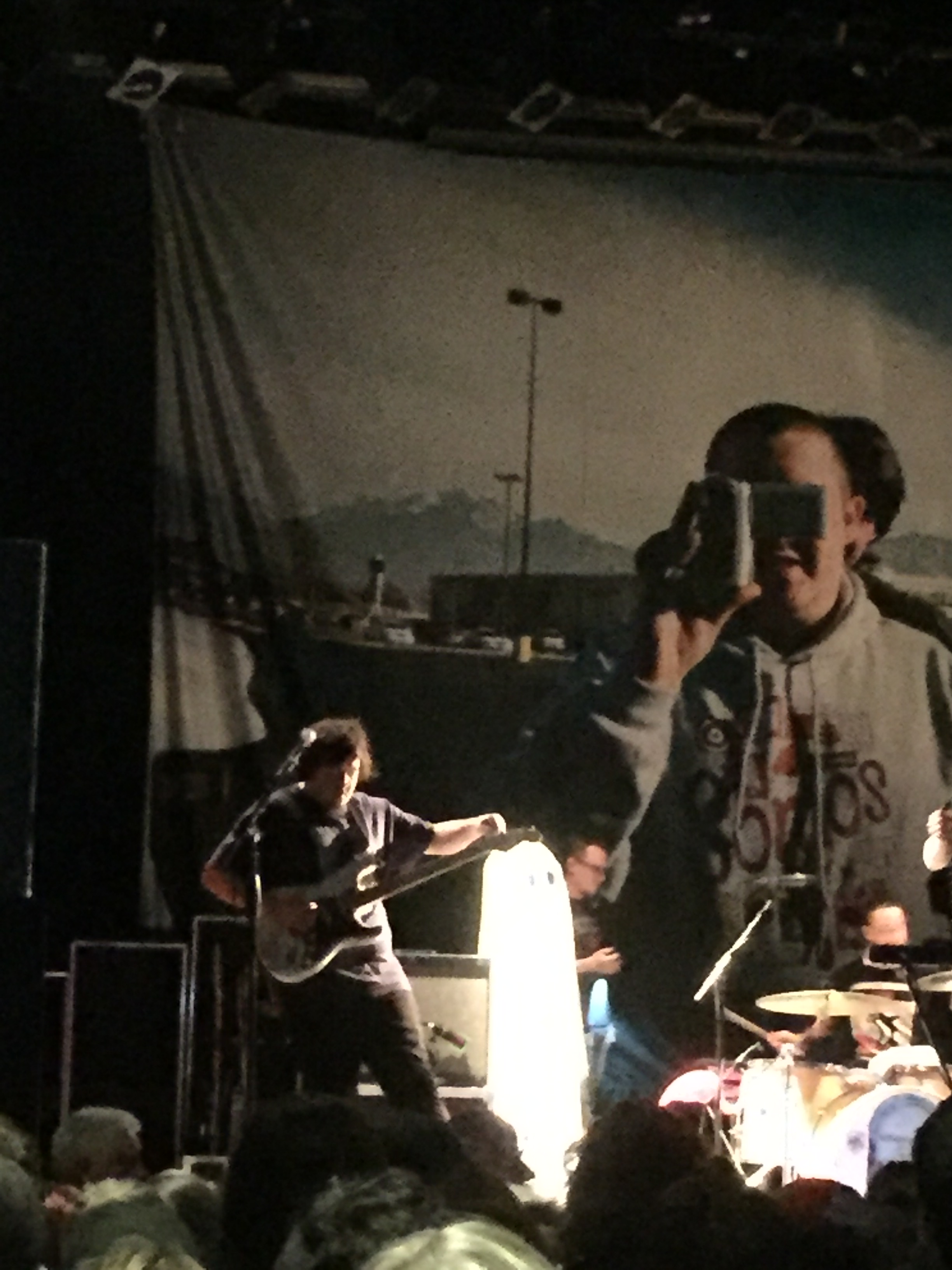 All of this just made people fucking thankful there was a Modern Baseball to headline 1,000+ capacity venues in 2016. Even though the house music was still playing and the lights were up, Lukens got a major cheer just when he walked on stage to adjust his gear. I cheered too, because the difference between Lukens now and when I’d seen him previously was striking. Gone was the nervous looking kid with a buzzcut and ball cap, and in his place was a longhair who still looked a bit withdrawn (tour’s gotta get sapping after a while), but nevertheless moved with an open confidence. Once Ewald and the other members came out–all sporting long hair and/or facial hair themselves–they stood tall, as well, as Holy Ghost‘s title track played over the PA so they could rip right into “Wedding Singer.”